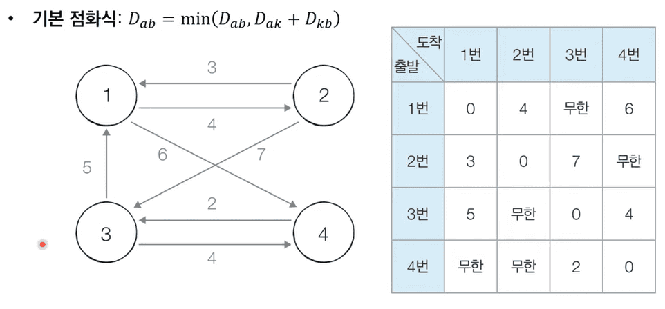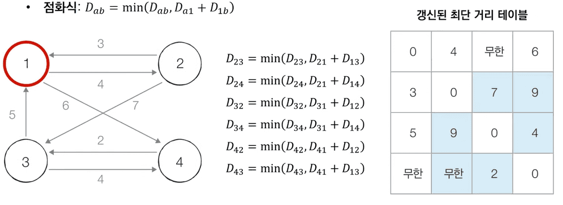 # 점화식에 따라 플로이드 워셜 알고리즘을 수행
